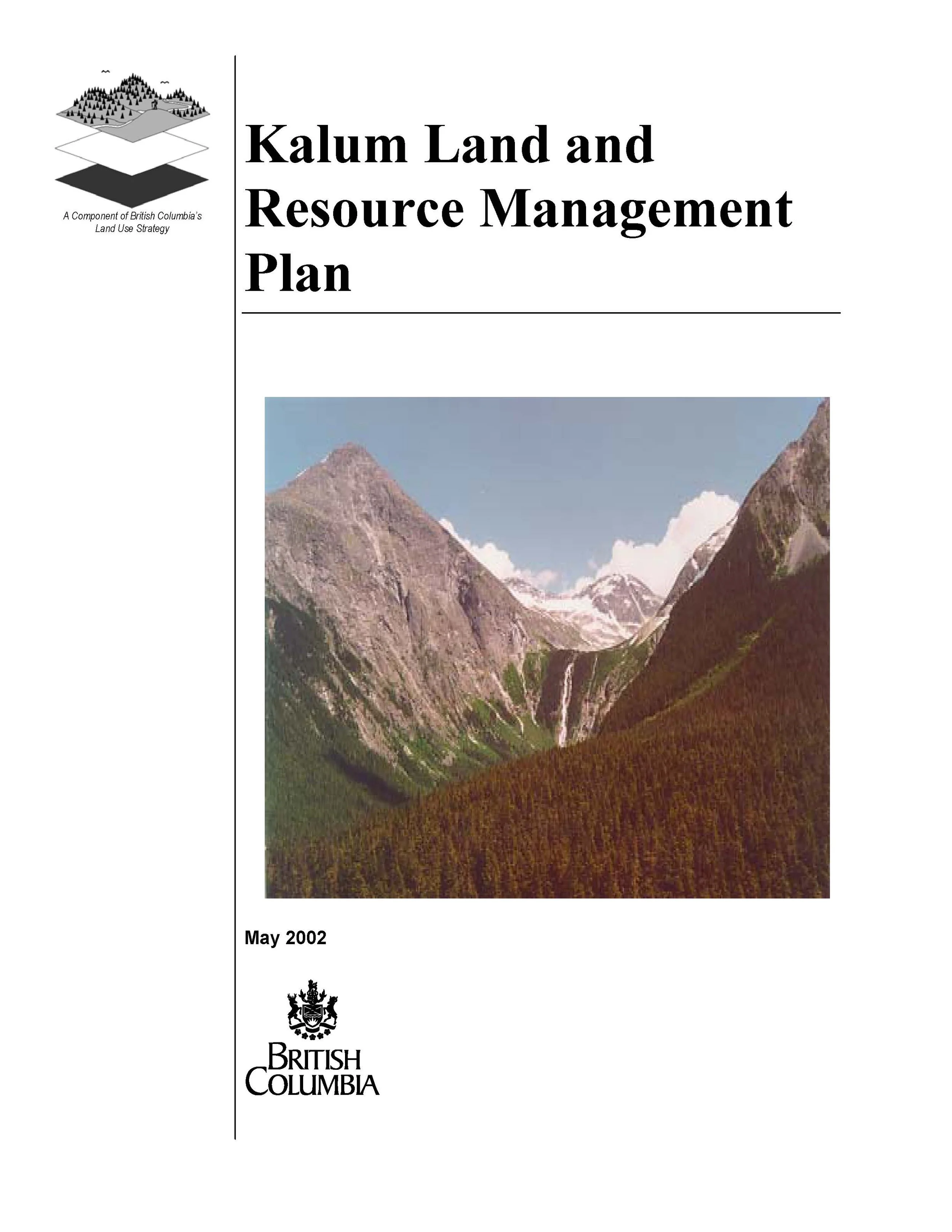 The Kalum Land and Resource Management Plan (LRMP) encompasses 2.2 million hectares in Northwestern British Columbia and represents the consensus reached by the participants of the Kalum LRMP planning table and the Provincial government decision regarding three areas where participants were unable to reach agreement. The plan is the result of a two phase process which started in 1992. The table was comprised of public stakeholders, Indigenous and provincial and local government representatives. This plan is consistent with provincial government policy for land use planning, as described in the Provincial Land Use Charter (1992) and the policy document Land and Resource Management Planning, A Statement of Principles and Process (1993). There are three main sections to the plan: Description of the Plan Area, Management Direction, and Implementation and Monitoring.